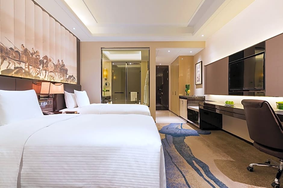 This twin room features floor-to-ceiling windows, bathrobes and air conditioning.